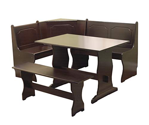 Target Marketing Systems 3 Piece Breakfast Nook Dining Set with a L-Shaped Storage Bench and a Trestle Style Dining Table and Bench, Espresso