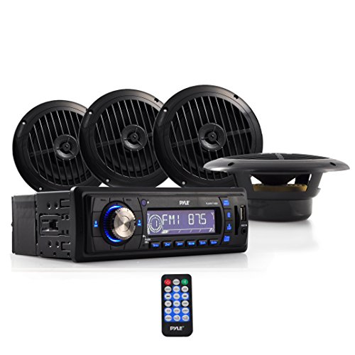 Marine Headunit Receiver Speaker Kit - In-Dash LCD Digital Stereo w/ AM FM Radio System 6.5’’ Waterproof Cone Speakers (4) MP3/USB/SD Readers Aux Input Single DIN & Remote Control - Pyle PLMRKT14BK
