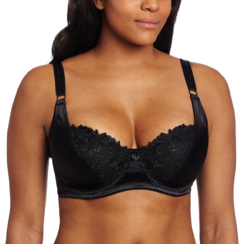 Carnival Women's Minimizer Embroidered Lace and Satin Cup Bra, Black, 42B