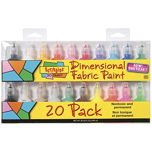 Bulk Buy: Scribbles Shiny 3D Paint - Pack of 20 Ultra Bright, Nontoxic & Permanent Dimensional Paints for Fabrics, T-shirts, Backpacks, Posters, Glass, Wood and More