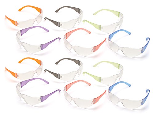 Pyramex S4110SMP Intruder Safety Glasses (12 Pack), Clear Lens with Assorted Temple Colors