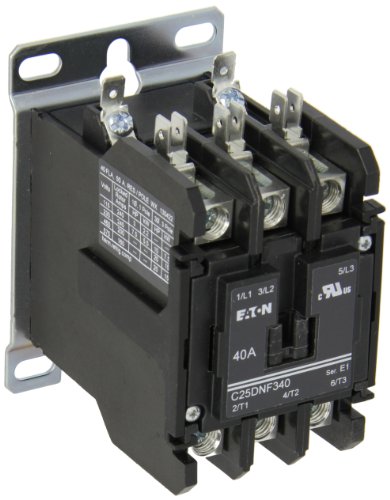 Eaton C25DNF340A Definite Purpose Contactor, 50mm, 3 Poles, Box Lugs, Quick Connect Side By Side Terminals, 40A Current Rating, 3 Max HP Single Phase at 115V, 10 Max HP Three Phase at 230V, 20 Max HP Three Phase at 480V, 120VAC Coil Voltage