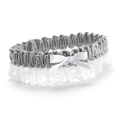 Hortense B. Hewitt Wedding Accessories Ribbon and Lace Garter, Platinum