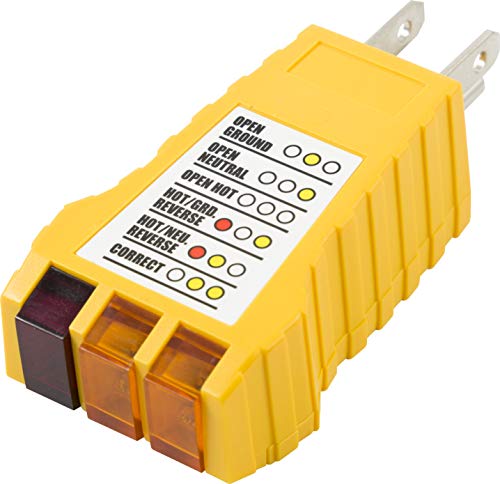 Power Gear 3 Wire Receptacle Tester, Outlet Tester, 6 Visual Indications, Light Indicator, UL Listed, Yellow, 50542