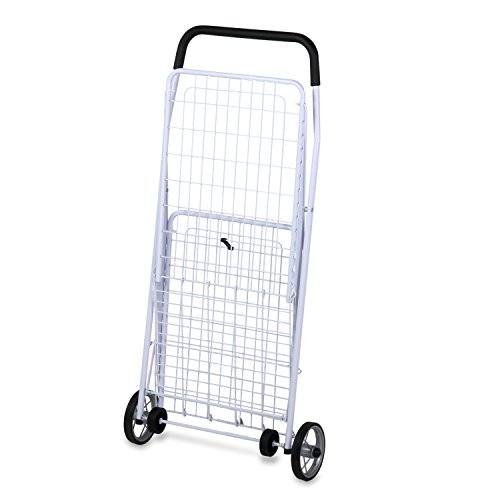Honey-Can-Do CRT-01513 Large Folding Shopping Cart Rolling 4-Wheel Utility Wagon, White