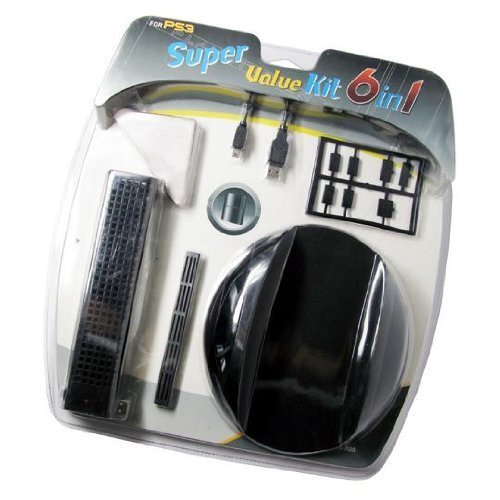 6 in 1 Super Value Kit for Sony PS3 (USB Charge Cable/Cooling Fan/Stand/Cover Pack)