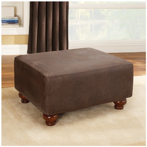 SureFit Stretch Leather - Ottoman Slipcover - Brown (SF37322)
