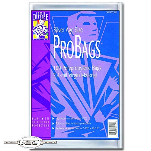 Comic Defense System Silver Age Comic Book ProBags Polypropylene Bags 7-1/8" x 10 1/2" Plus 1 1/2" Flap