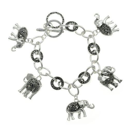PammyJ Silvertone Filigree Design Elephant Charm Bracelet