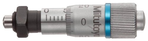 Mitutoyo 148-243 Micrometer Head, 0.1mm/Rev., 0-6.5mm Range, 0.002mm Graduation, +/-0.005mm Accuracy, Plain Thimble, Clamp Nut, Spherical SR3 Face, Small Thimble Dia.