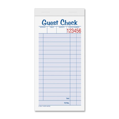 TOPS Guest Check Books, 2-Part, Carbonless, White/Canary, 3-11/32" x 6-3/8", 50 Sets/Pad, 10 Pads/Pack (45702)