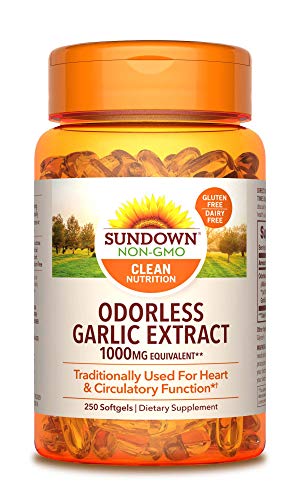 Sundown Garlic 1000 mg, 250 Odorless Softgels (Packaging May Vary)