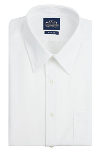 Eagle Men's Non Iron Slim Fit Solid Point Collar Dress Shirt, White, 16.5" Neck 34"-35" Sleeve