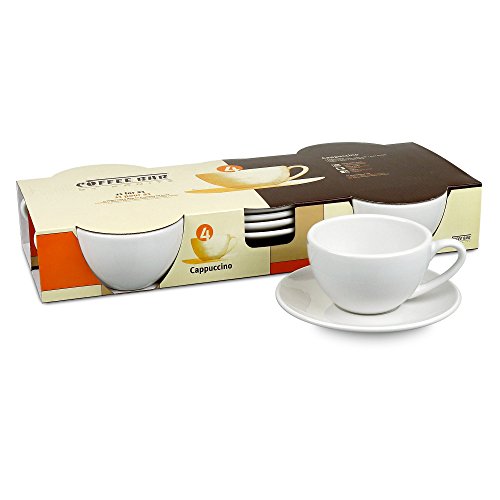 Konitz Coffee Bar Cappuccino Cups and Saucers, 6-Ounce, White, Set of 4