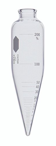 Kimble 45243-200 Glass 100mL Graduated Oil Short Cone Centrifuge Tube for Petroleum Field Testing, Graduated in % (100 mL = 200%), Calibrated 'To Contain', 6" Length, Clear, Case of 6
