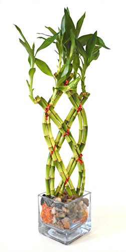 9GreenBox - Live 8 Braided Lucky Bamboo Plant Arrangement w/ Pebble & Vase