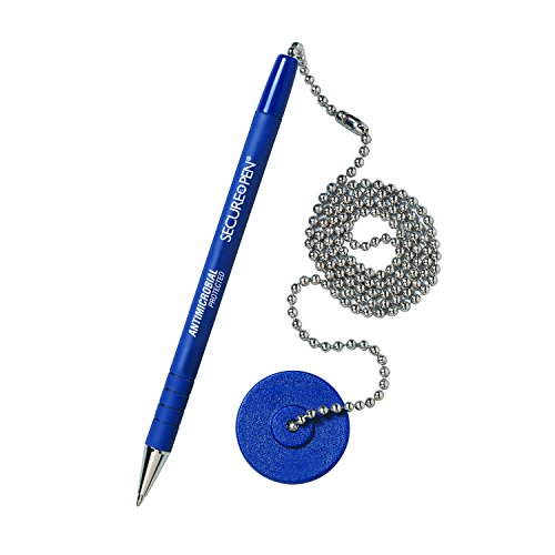MMF Industries Secure-A-Pen Replacement Antimicrobial Counter Pen with Chain, Blue (28708)