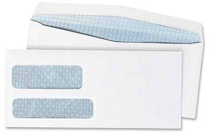 500#10 Double Window Envelopes - Regular Gummed, White Security Envelopes - 4" 1/8 X 9" 1/2