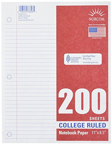 Norcom College Ruled Filler Paper, 11 x 8.5 Inches, 200 Sheets, White (78326-24)