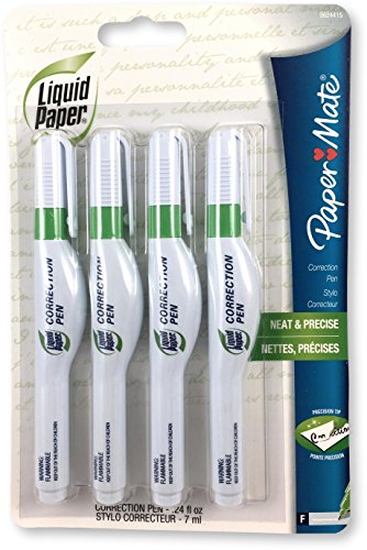 Paper Mate 5624415 Liquid Paper Correction Pen, 0.24 Ounces, Unique Squeeze-Control System, Precision Tip, Fast Drying Correction Fluid, Premium Coverage, Pack of 4