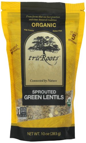 truRoots Organic Sprouted Green Lentils, 10-Ounce Pouches (Pack of 6)