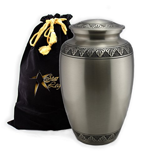 Star Legacy's Athena Pewter - Silver Brass Metal Cremation Adult Urn for Human Ashes w Velvet Bag
