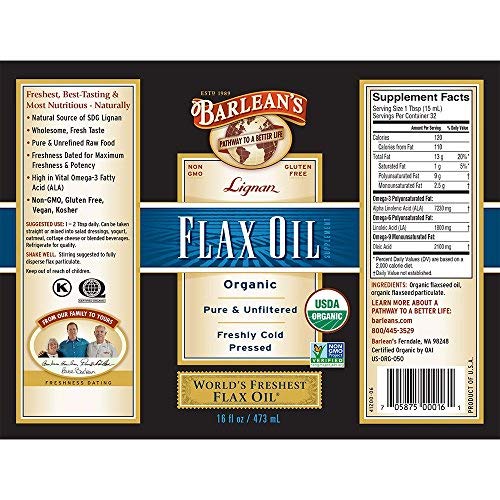 Barlean’s Organic Lignan Flax Oil, 16-oz