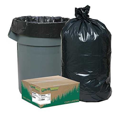 Earthsense Commercial RNW6050 Can Liner, 55-60 gal, 1.25 mil, 38" x 58", Black (Pack of 100)