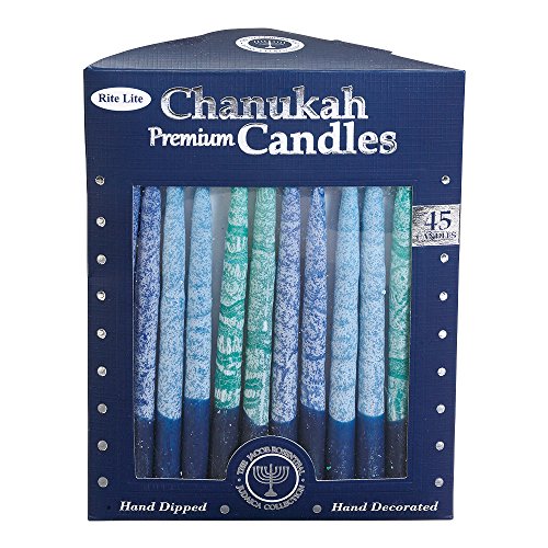 Rite-Lite Judaica Hand-Dipped Shades of Blue 5 3/4-Inch Chanukah Candles, Box of 45