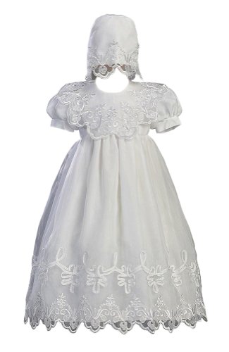 lito Embroidered Organza Christening Baptism Gown with Bonnet,White,0-3 Months