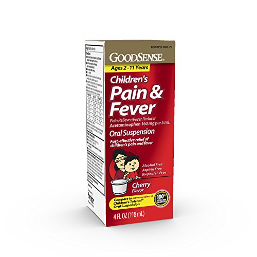 GoodSense Children's Pain & Fever Oral Suspension, Cherry Flavor, 4 Fluid Ounce, Acetaminophen 160 mg per 5 mL, Effective and Safe Pain Reliever and Fever Reducer for Children