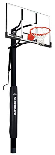 Silverback 54" In-Ground Height Adjustable Basketball System with Tempered Glass Backboard, Pro-Style Breakaway Rim, and Backboard Pad