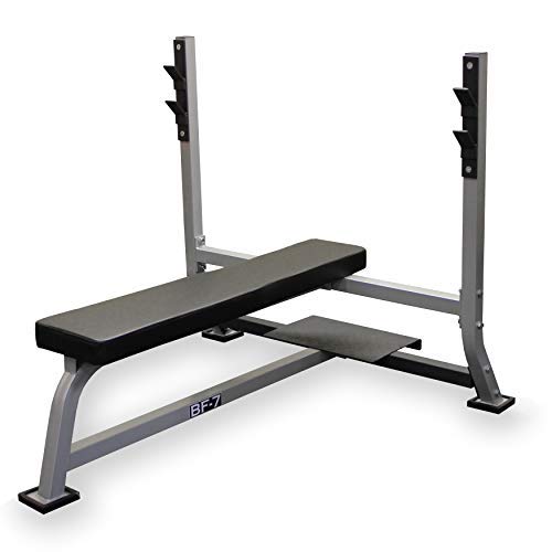 Valor Fitness BF-7 Olympic Bench with Spotter Stand Plus Bundle Option with Chrome Olympic Bar and Olympic Plate Set