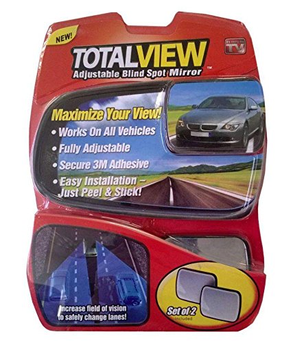 Total View 360 Wide Angle Universal Adjustable Blind Spot Mirror, Frameless Square Design, 2 Pack