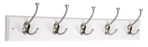 Liberty Hardware 129848 Hook Rail/Coat Rack with 5 Flared Tri Hooks, 27-Inch, White and Satin Nickel, Flat White and Satin Nickel