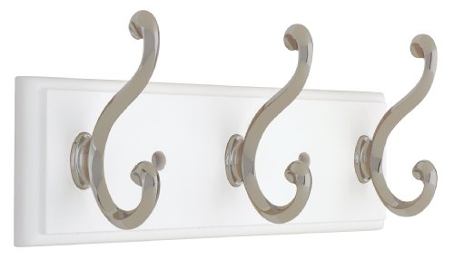 Liberty Hardware 129854 10-Inch Hook Rail/Coat Rack with 3 Scroll Hooks, White and Satin Nickel