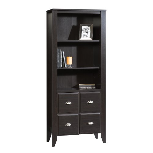 Sauder 408739 Shoal Creek Library with Doors, L: 28.43" x W: 14.49" x H: 68.86", Jamocha Wood finish