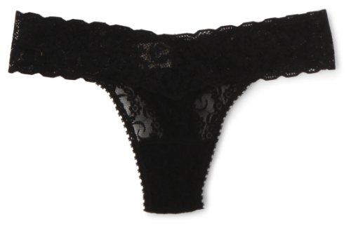Only Hearts Women's Stretch Lace Thong Panty,Black,Medium/Large
