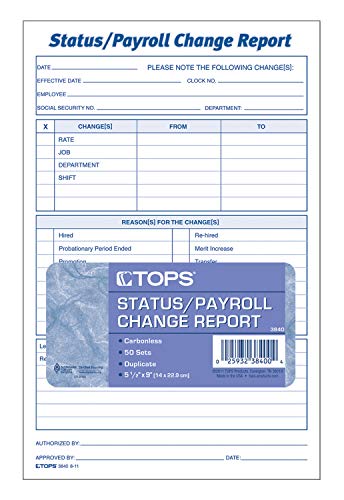 TOPS Employee Status/Payroll Change Report, 2-Part, Carbonless, 50 ST/PK (3840)
