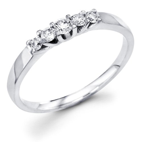 Size - 7 - 14k White Gold 5 Five Stone Round Diamond Wedding Anniversary 2mm Ring Band (1/5 cttw, G-H Color, I1 Clarity)