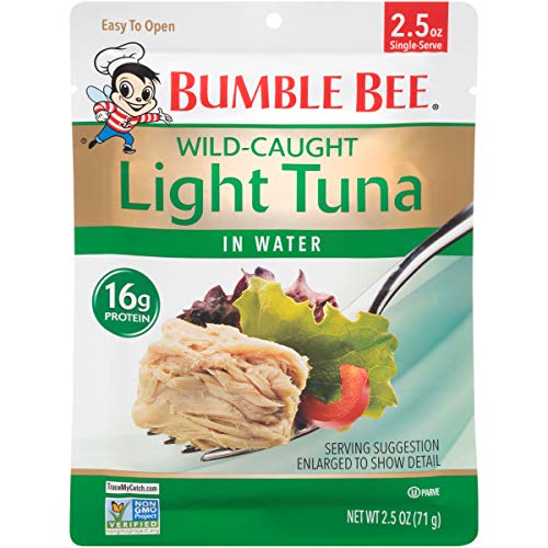 BUMBLE BEE Premium Light Tuna Pouch in Water, Ready to Eat Tuna Fish, High Protein, Keto Food and Snacks, Gluten Free, 2.5oz Pouch (Pack of 12)