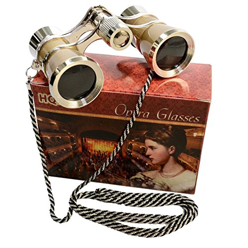 3 x 25 Opera Glasses Golden with Crystal Clear Optic (CCO) and Silver Trim w/Necklace Chain by HQRP