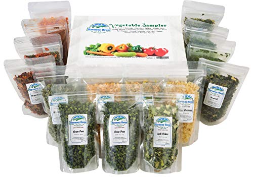 Harmony House Dehydrated Vegetable Sampler – 15 Count Variety Pack, Resealable Zip Pouches, For Cooking, Camping, Emergency Supply and More