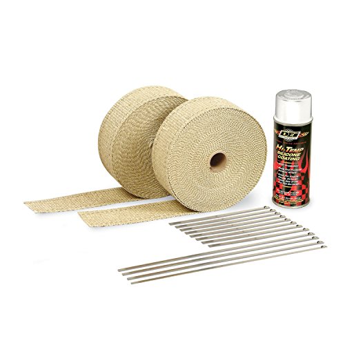 Design Engineering 010111 Exhaust / Header Wrap Kit with Hi-Temp Silicone Coating Spray - Tan Wrap / White Spray