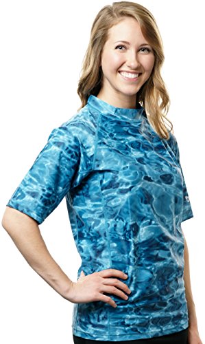 Aqua Design Petite Women's Relaxed Fit UPF 50+ Sun Protection Rash Guard Shirt, Ocean Blue, Large