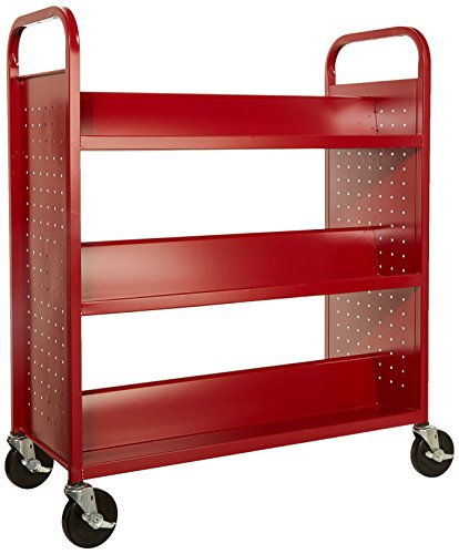 Sandusky Lee SV336-01 Double Sided Sloped Shelf Welded Book Truck, 19" Length, 39" Width, 46" Height, 6 Shelves, Fire Engine Red