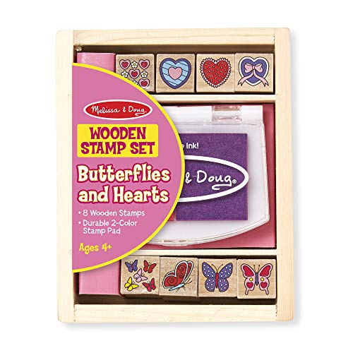 Melissa & Doug Butterfly and Heart Wooden Stamp Set (8 Stamps and 2-Color Stamp Pad)