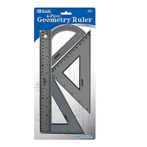Bazic Geometry Ruler Triangle Protractor Combination, Set of 4 Pieces