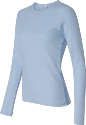 BELLA Brand Ladies 100% Cotton Long Sleeve Baby Rib Crew Neck T-Shirt - Baby Blue, Ladies Medium