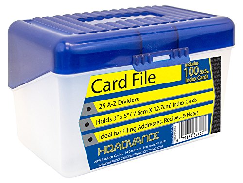 HQ Advance Products Card File Box, A-Z Dividers with 100-Piece 3 x 5 Inch, Lined Index Cards (38100), Assorted